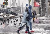 Снегопад в Москве. Жанровая фотография. Прохожие на улице во время снегопада.