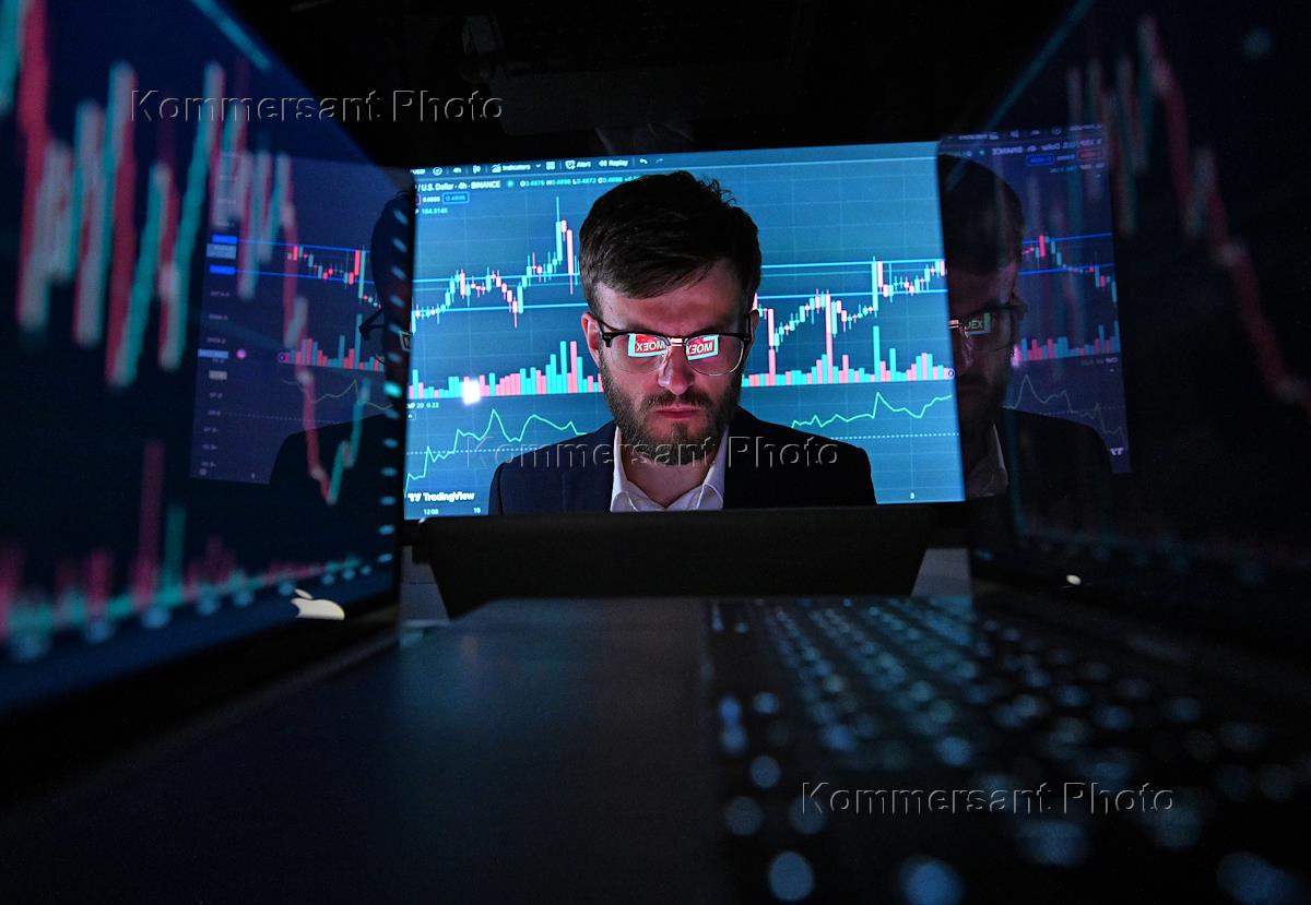 Жанровая фотография. Финансовые графики на экране компьютера.