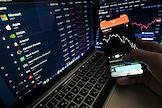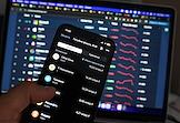 Жанровая фотография. Финансовые графики на экране компьютера и мобильного телефона.
