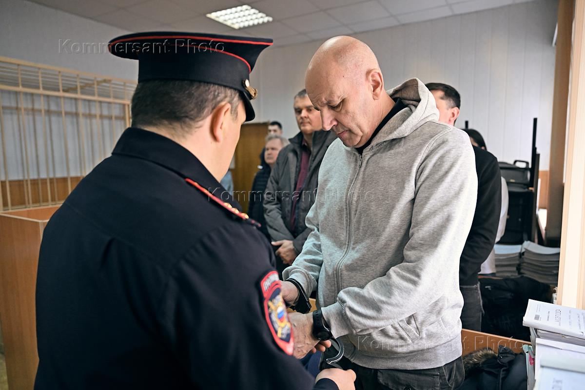 Оглашение приговора по делу бывших сотрудников Ростехнадзора: бывшего заместителя начальника отдела ядерной и радиационной безопасности Андрея Лавриновича, бывшего главного специалиста-эксперта Кирилла Неволина, а начальника отдела лицензирования Ростехнадзора Алексея Аникина, за взятки, связанные с выдачей лицензий на перевозку ядерных отходов, в Таганском районном суде. Бывший заместитель начальника отдела ядерной и радиационной безопасности Ростехнадзора Андрей Лавринович (в центре) во время заседания.