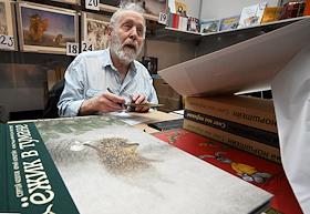 Международная ярмарка интеллектуальной литературы "non/fictioN Весна" в Гостином дворе. Режиссер-мультипликатор Юрий Норштейн во время автограф-сессии своей книги "Ежик в тумане" на ярмарке.