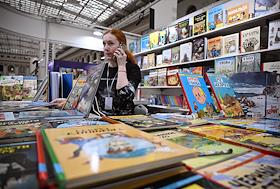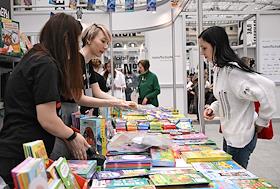 Международная ярмарка интеллектуальной литературы "non/fictioN Весна" в Гостином дворе. Стенд издательства с книгами для детей.