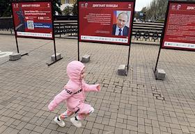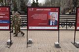 Виды Донецка. Жанровая фотография. Стенд, посвященный диктанту Победы, на бульваре Пушкина.