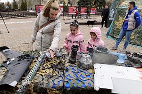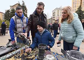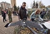 Выставка, посвященная Дню войск противовоздушной обороны России. Интернациональная бригада "Пятнашка" предоставила объекты противовоздушной и радиоэлектронной обороны, а Совместный центр контроля и координации вопросов прекращения огня и стабилизации линии разграничения сторон (СЦКК) – сбитые ПВО боеприпасы, такие как "ATACMS" и "AGM-88 HARM", беспилотные летательные аппараты со стороны ВСУ. Посетители на выставке.