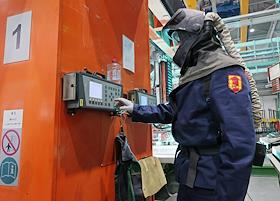 Завод "Уральские локомотивы" (группа "Синара"). Жанровая фотография. Рабочий в производственном цехе.