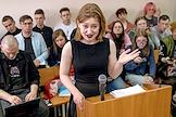 Оглашение приговора Дарье Козыревой, обвиняемой по делу о дискредитации армии, в Петроградском районном суде. Обвиняемая по делу о дискредитации армии Дарья Козырева во время заседания суда.