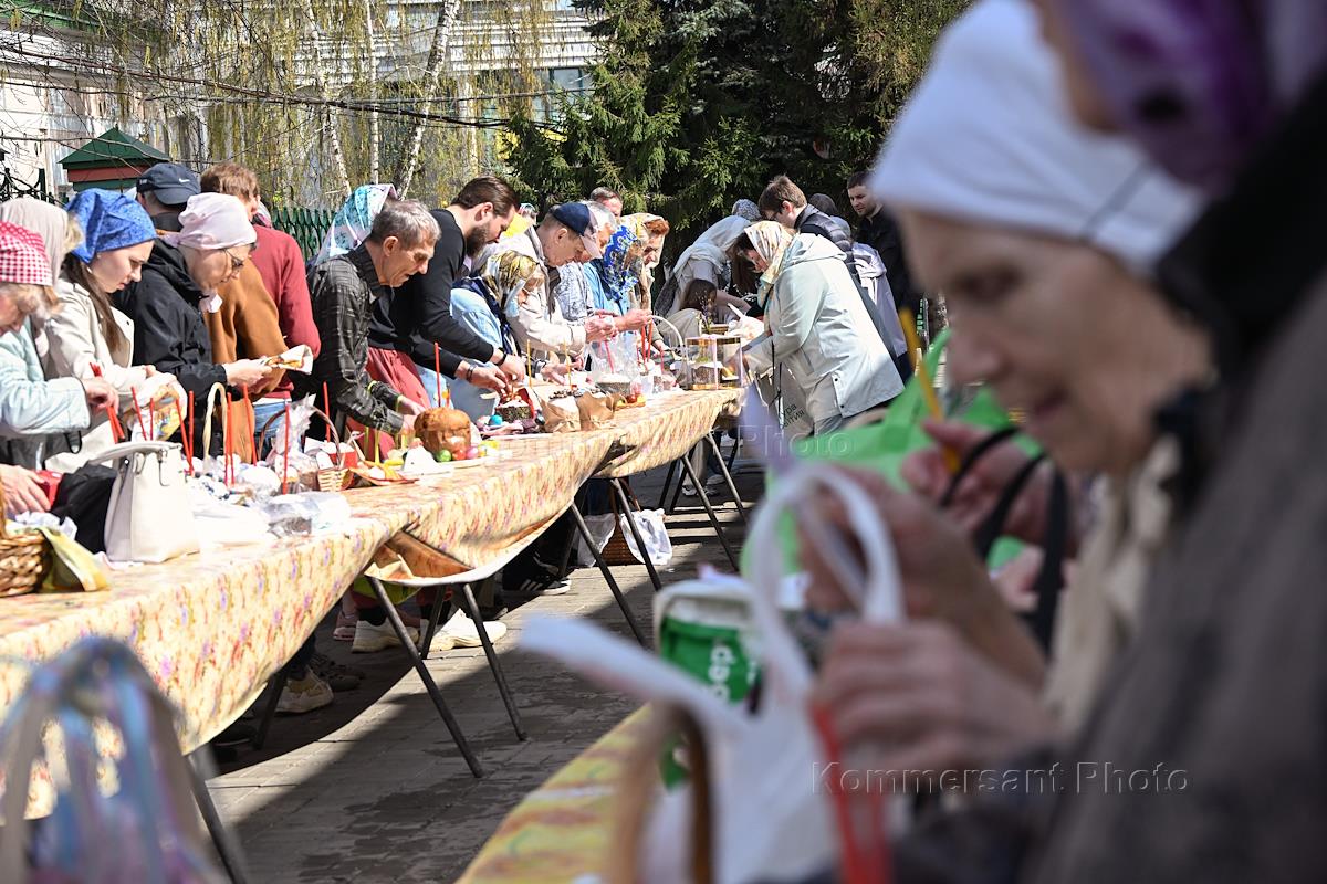 Великая Суббота. Чин освящения пасхальных куличей, яиц и пасхи в канун Светлого Христова Воскресения в Храме святителя Николая Чудотворца в Хамовниках.