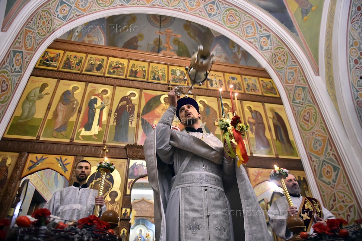 Пасхальная служба в храме Святого Иоанна Предтечи в Красноярске.