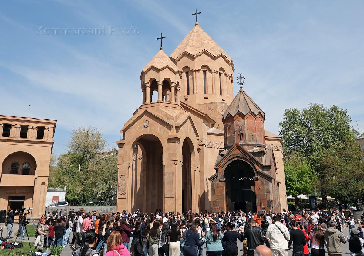Церковь Святой Анны в Ереване в день Пасхи.