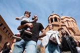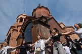 Армянские национальные танцы возле церкви Святой Анны в Ереване в день Пасхи.