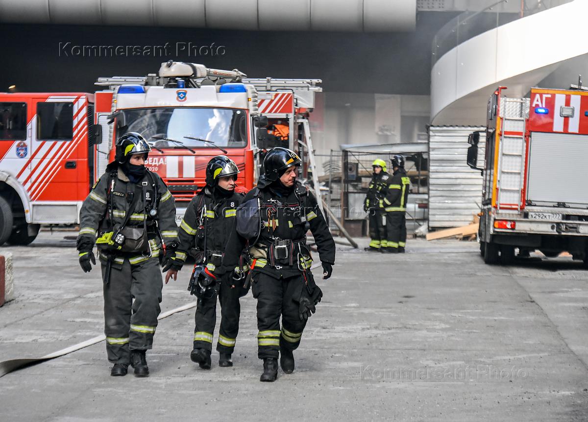Пожар на подземной парковке Торгово-развлекательного центра (ТРЦ) "Афимолл Сити" на территории Московского международного делового центр (ММДЦ) "Москва Сити". Жанровая фотография.
