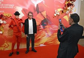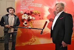 Церемония вручения XIII ежегодной премии The Art Newspaper Russia в Московском драматическом театре имени А.С.Пушкина. Художник Георгий Острецов (слева) на церемонии.