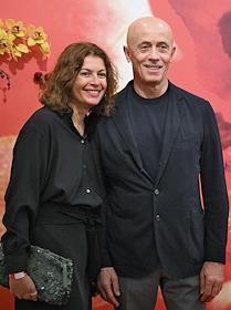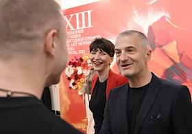 Церемония вручения XIII ежегодной премии газеты The Art Newspaper Russia в Московском драматическом театре имени А. С. Пушкина. Коллекционер Максим Боксер (слева) и искусствовед, куратор Зельфира Трегулова (справа) на церемонии.