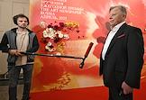 Церемония вручения XIII ежегодной премии газеты The Art Newspaper Russia в Московском драматическом театре имени А. С. Пушкина. Архитектор, художник Юрий Аввакумов (слева) на церемонии.
