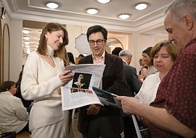 Церемония вручения XIII ежегодной премии The Art Newspaper Russia в Московском драматическом театре имени А. С. Пушкина. Руководитель отдела спецпроектов газеты The Art Newspaper Russia Татьяна Тафинцева (в центре) и журналист Альберт Галеев (слева) на церемонии.