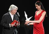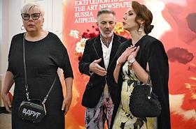 Церемония вручения XIII ежегодной премии The Art Newspaper Russia в Московском драматическом театре имени А.С.Пушкина. Арт-директор московской галереи актуального искусства RuArts Катрин Борисов (в центре) на церемонии.