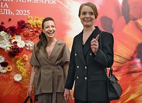 Церемония вручения XIII ежегодной премии The Art Newspaper Russia в Московском драматическом театре имени А.С.Пушкина. Главный редактор The Art Newspaper Russia Милена Орлова (справа) и журналист Надежда Лисовская (слева) на церемонии.