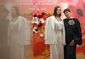 Церемония вручения XIII ежегодной премии The Art Newspaper Russia в Московском драматическом театре имени А.С.Пушкина. Заместитель главного редактора The Art Newspaper Russia Татьяна Маркина (вторая справа), журналисты Алиса Дудакова-Кашуро (слева) и Андрей Паламарчук (второй слева) на церемонии.