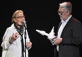 Церемония вручения XIII ежегодной премии The Art Newspaper Russia в Московском драматическом театре имени А.С.Пушкина. Директор Мультимедиа Арт Музея Ольга Свиблова (слева) и заведующий отделом западноевропейского изобразительного искусства Эрмитажа Михаил Дединкин (справа) на церемонии.