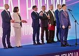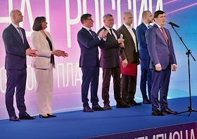 Церемония открытия Чемпионата России по синхронному плаванию во Дворце водных видов спорта. Первый заместитель губернатора Свердловской области Алексей Шмыков (справа) во время церемонии.