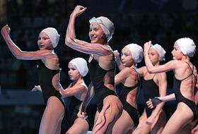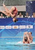 Церемония открытия Чемпионата России по синхронному плаванию во Дворце водных видов спорта. Показательные выступления участников соревнований.