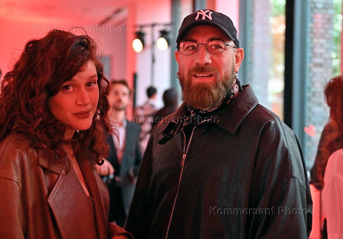 Презентация первого номера газеты Fashion Paper в Галерее Гари Татинцяна. Основательница модельного агентства Lumpen Авдотья Александрова (в центре) и актер агентства Lumpen Александр Гриднев (слева) на презентации.