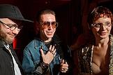 Презентация первого номера газеты Fashion Paper в Галерее Гари Татинцяна. Певица Севиль (слева) и стилисты Миша (справа) и Китти (второй справа) на презентации.