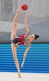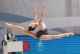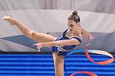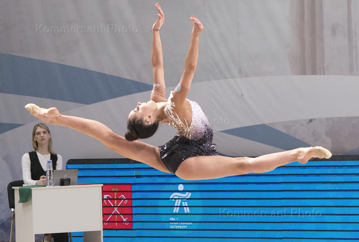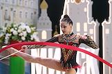 Матчевая встреча команд Санкт-Петербурга и Минска по художественной гимнастике, посвященная 80-летию победы в Великой Отечественной войне, в Центре художественной гимнастики "Жемчужина". Белорусская гимнастка Алина Горносько во время выступления.