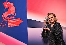 47-й Московский международный кинофестиваль (ММКФ). Церемония закрытия в Московском театре мюзикла. Актриса Марина Доможирова на церемонии.