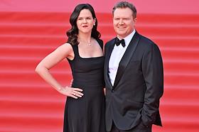 47-й Московский международный кинофестиваль (ММКФ). Церемония закрытия в Московском театре мюзикла. Режиссер Антон Маслов и сценарист Мария Маслова на церемонии.