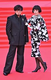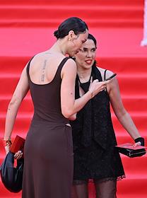 47-й Московский международный кинофестиваль (ММКФ). Церемония закрытия в Московском театре мюзикла. Режиссеры Алексей Учитель (слева) и Стася Толстая (вторая справа) на церемонии.