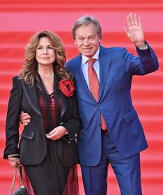 47-й Московский международный кинофестиваль (ММКФ). Церемония закрытия в Московском театре мюзикла. Представитель в Совете Федерации России от законодательного (представительного) органа государственной власти Пермского края Алексей Пушков с супругой Ниной во время церемонии.