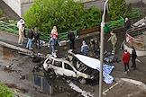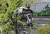 Последствия взрыва автомобиля на бульваре Нестерова в микрорайоне Авиаторов. В результате террористической атаки погиб заместитель начальника Главного оперативного управления Генерального штаба вооруженных сил России Ярослав Москалик.