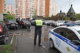Последствия взрыва автомобиля на бульваре Нестерова в микрорайоне Авиаторов. Сотрудник полиции на месте происшествия. В результате террористической атаки погиб заместитель начальника Главного оперативного управления Генерального штаба вооруженных сил России Ярослав Москалик.