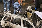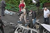 Последствия взрыва автомобиля на бульваре Нестерова в микрорайоне Авиаторов. Сотрудники экспертной службы на месте происшествия. В результате террористической атаки погиб заместитель начальника Главного оперативного управления Генерального штаба вооруженных сил России Ярослав Москалик.