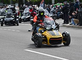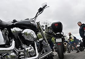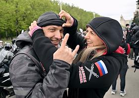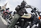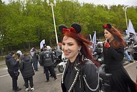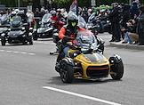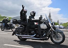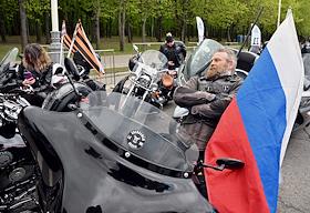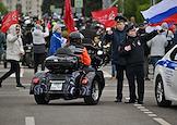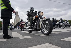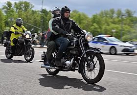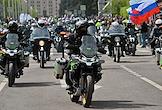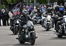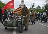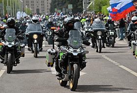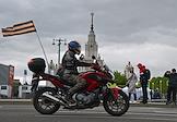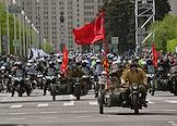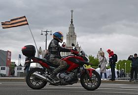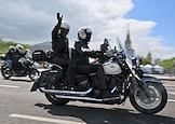 Московский мотофестиваль, посвященный открытию мотосезона. В этом году мероприятие посвящено 80-летию Победы в Великой Отечественной войне. Участники фестиваля во время мотопробега.