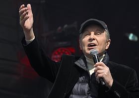 Московский мотофестиваль, посвященный открытию мотосезона. В этом году мероприятие посвящено 80-летию Победы в Великой Отечественной войне. Певец Лев Лещенко во время выступления перед стартом мотопробега на Университетской площади на Воробьевых горах.