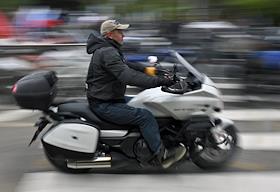 Московский мотофестиваль, посвященный открытию мотосезона. В этом году мероприятие посвящено 80-летию Победы в Великой Отечественной войне. Руководитель департамента транспорта и развития дорожно-транспортной инфраструктуры города Москвы Максим Ликсутов перед стартом мотопробега на Университетской площади на Воробьевых горах.