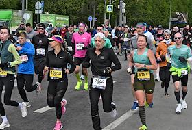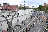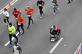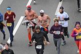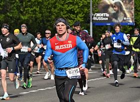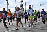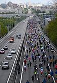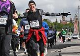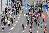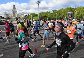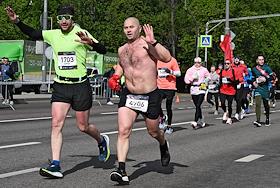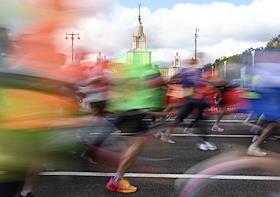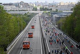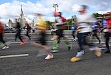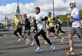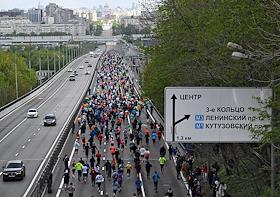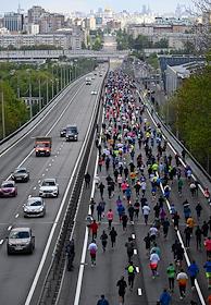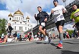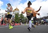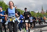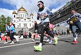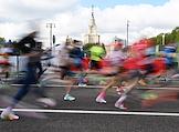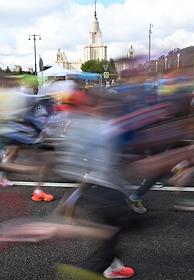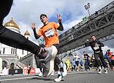 XI Московский полумарафон. Забег на 21,1 км от Университетской площади МГУ до Большой спортивной арены спортивного комплекса "Лужники". Жанровая фотография. Участники во время забега.