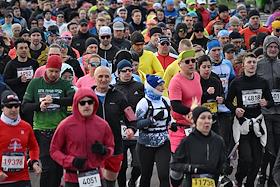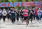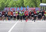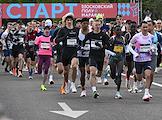 XI Московский полумарафон. Забег на 21,1 км от Университетской площади МГУ до Большой спортивной арены спортивного комплекса "Лужники". Жанровая фотография. Участники забега на старте.