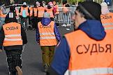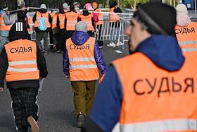XI Московский полумарафон. Забег на 21,1 км от Университетской площади МГУ до Большой спортивной арены спортивного комплекса "Лужники". Жанровая фотография. Судья полумарафона на старте.