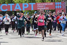 XI Московский полумарафон. Забег на 21,1 км от Университетской площади МГУ до Большой спортивной арены спортивного комплекса "Лужники". Участники полумарафона на старте.