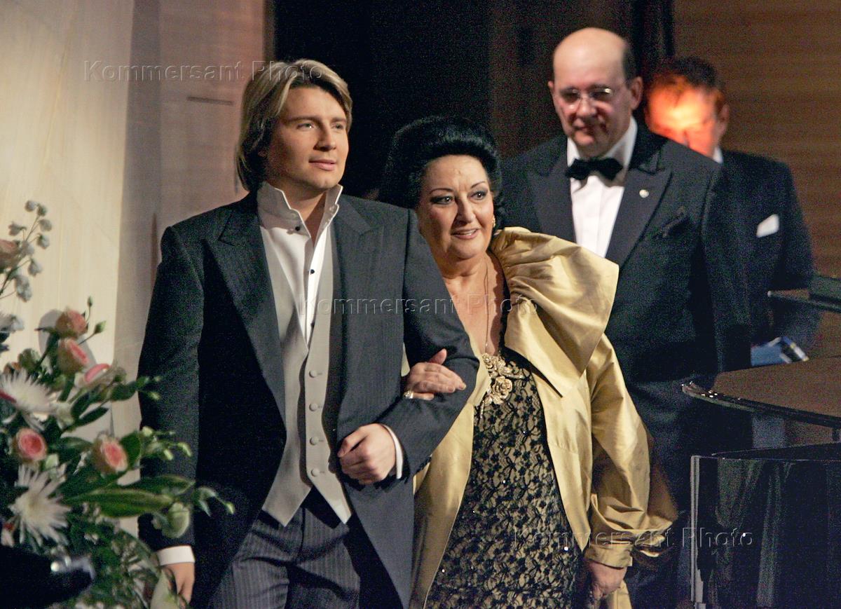 Российский певец Николай Басков (слева), испанская оперная певица Монтсеррат Кабалье (в центре) во время выступления на концерте в Московском Международном Доме Музыки (ММДМ).