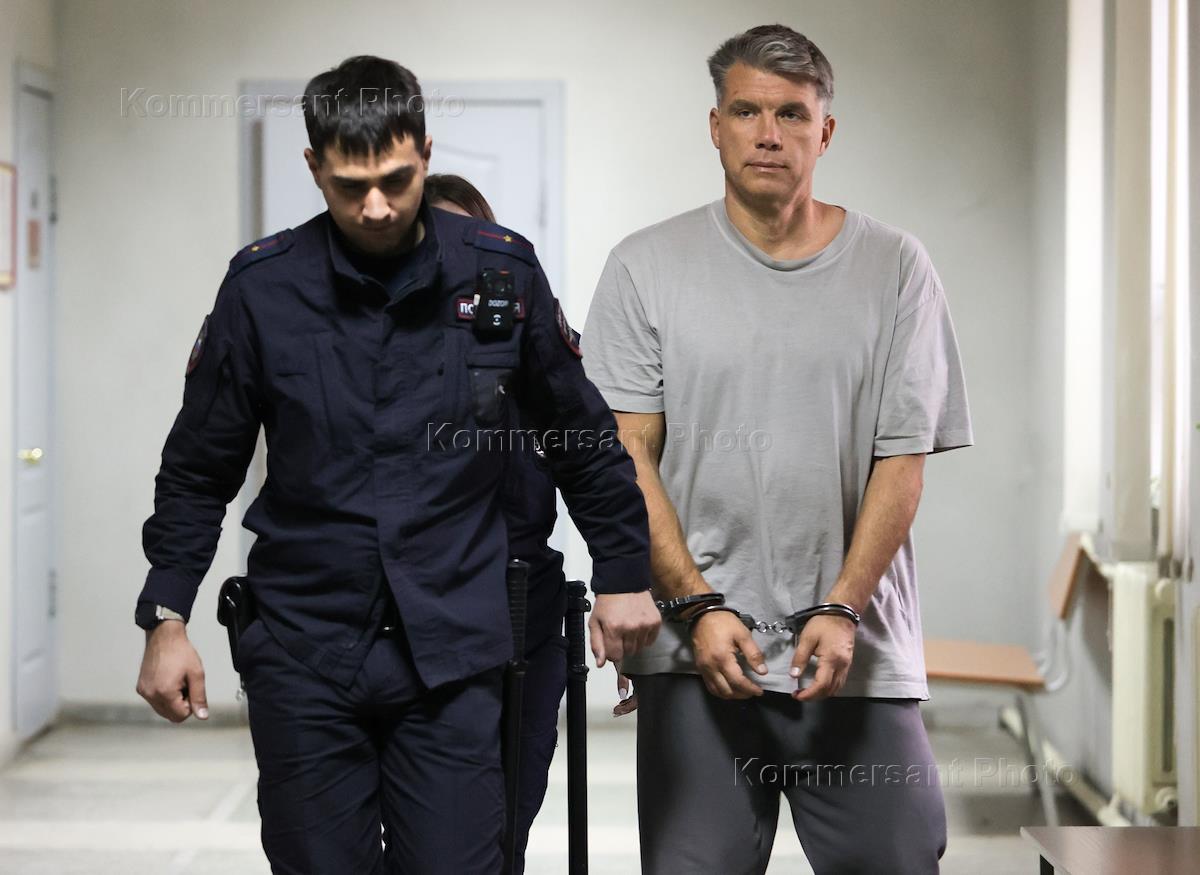 Вынесение меры пресечения бывшему участнику ОПГ "Центровые" Сергею Горшунову, обвиняемому в убийстве, в Ленинском районном суде. Бывший участник ОПГ "Центровые" Сергей Горшунов (справа) перед началом заседания суда.
