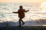 Виды Сочи. Жанровая фотография. Ребенок во время вечерней прогулки на пляже "Ривьера".