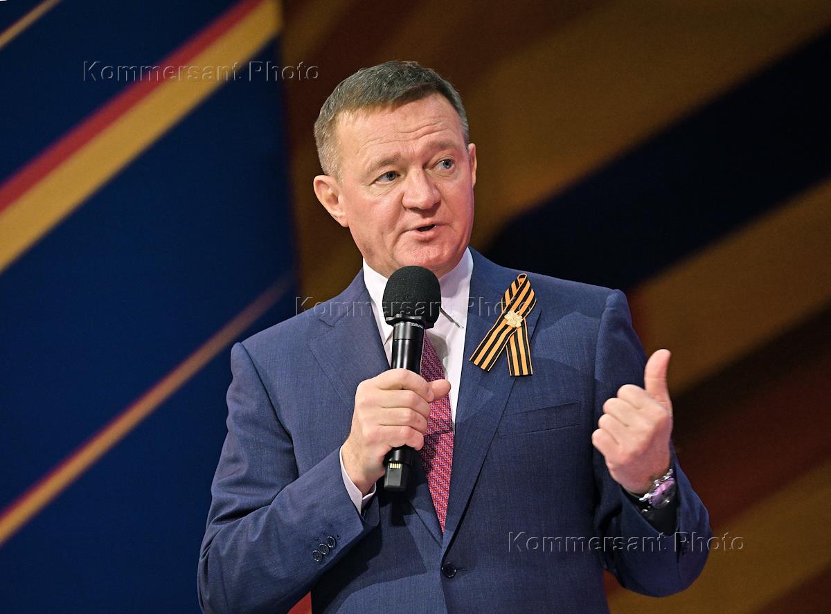 Федеральный просветительский марафон "Знание. Первые. 80 лет Победы" в музее Победы на Поклонной горе. Министр транспорта России Роман Старовойт во время выступления с лекцией "Транспорт в годы Великой Отечественной войны" на марафоне.