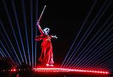 Акция "Свет Великой Победы", приуроченная к 80-летию Победы в Великой Отечественной войне, на территории мемориального комплекса Мамаев курган. Световые проекции на главном монументе мемориального комплекса "Родина-мать зовет!".