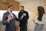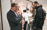 Спектакль "Почему Я?" в постановке режиссера Андрея Фомина в Театре "Маска". Продюсер, режиссер Андрей Фомин (слева) и режиссер Алексей Кузьмин-Тарасов (в центре) перед началом спектакля.