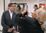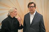Спектакль "Почему Я?" в постановке режиссера Андрея Фомина в Театре "Маска". Супруга генерального директора компании "Ритуал.ру" Олега Шелягова Виктория Шелягова (слева) и продюсер, режиссер Андрей Фомин (справа) перед началом спектакля.