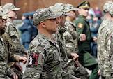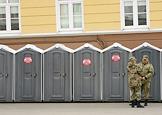 Репетиция военного парада в честь 80-летия Победы в Великой Отечественной войне (ВОВ) на площади Минина и Пожарского. Жанровая фотография. Военнослужащие перед началом репетиции.
